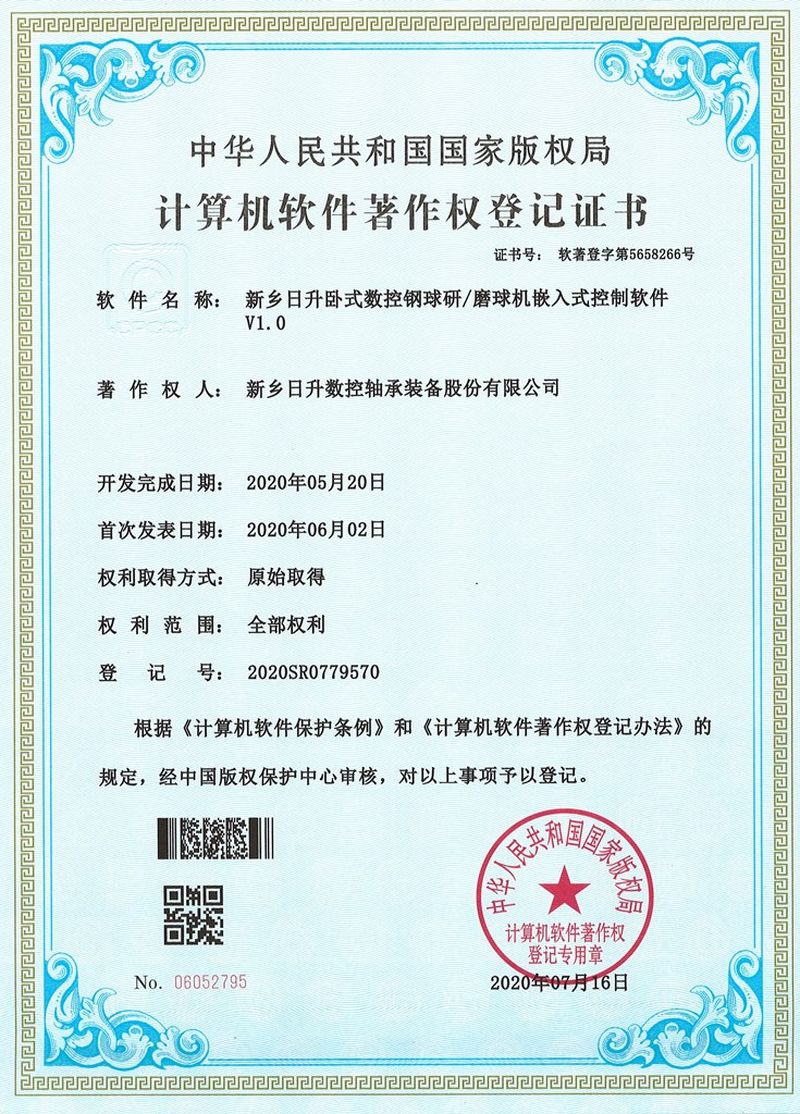 近日,我公司的“新鄉(xiāng)日升臥式數(shù)控鋼球研/磨球機(jī)嵌入式控制軟件 V1.0”獲得國家版權(quán)局“計算機(jī)軟件著作權(quán)登記”。至此,公司共有17項(xiàng)計算機(jī)軟件著作權(quán)在國家版權(quán)局登記。
