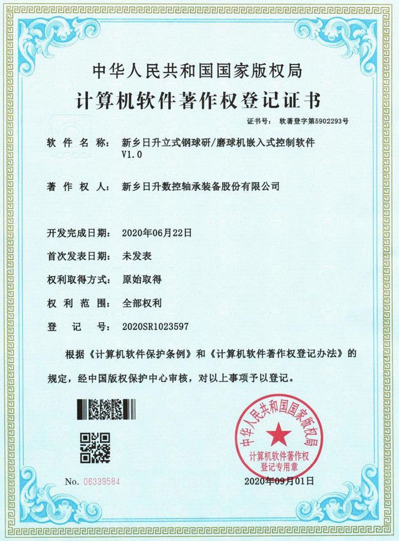 近日,我公司 “新鄉(xiāng)日升立式鋼球研/磨球機(jī)嵌入式控制軟件 V1.0” 獲得國(guó)家版權(quán)局“計(jì)算機(jī)軟件著作權(quán)登記。