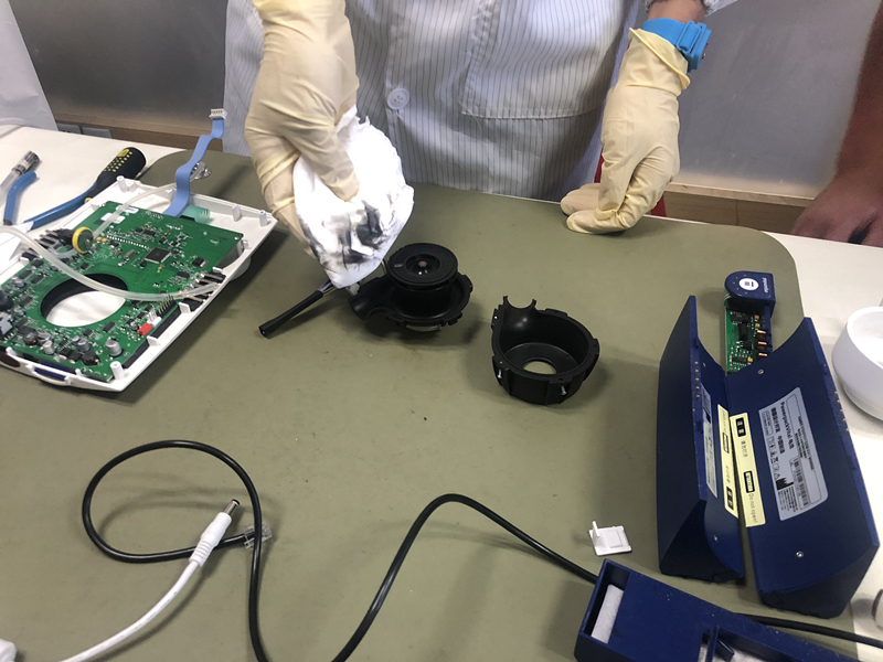 工程師正在準(zhǔn)備對患者的呼吸機(jī)進(jìn)行拆機(jī)維護(hù)