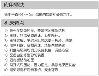 本機(jī)床采用臥式布局,大循環(huán)加工方式。主機(jī)為了強(qiáng)化整機(jī)剛性,采用整體封閉式框架式鑄造結(jié)構(gòu),精度高且保持性好。主軸結(jié)構(gòu)優(yōu)化,采用變頻無級(jí)調(diào)速技術(shù),使得主機(jī)在加工過程中參數(shù)更易控制。輸球料盤為傾斜式結(jié)構(gòu),變頻無級(jí)調(diào)速,使進(jìn)球速度更易操控。