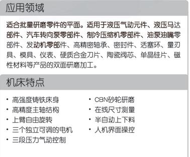 本機(jī)床為自動(dòng)、高效率機(jī)床,適用于批量研磨零件。主要用于研磨零件的平面,適用于鋼、鑄鐵、銅、硬質(zhì)合金、陶瓷、單晶硅等的加工??梢詮V泛用于液壓氣動(dòng)元件、液壓馬達(dá)部件、汽車燃油泵部件、制冷壓縮機(jī)零部件、油泵油嘴零部件、發(fā)動(dòng)機(jī)零部件、高精密軸承滾柱及套圈、密封件、活塞環(huán)、量刃具、模具、儀表、硬質(zhì)合金刀片、陶瓷閥芯、磁性材料等產(chǎn)品的雙面研磨加工。